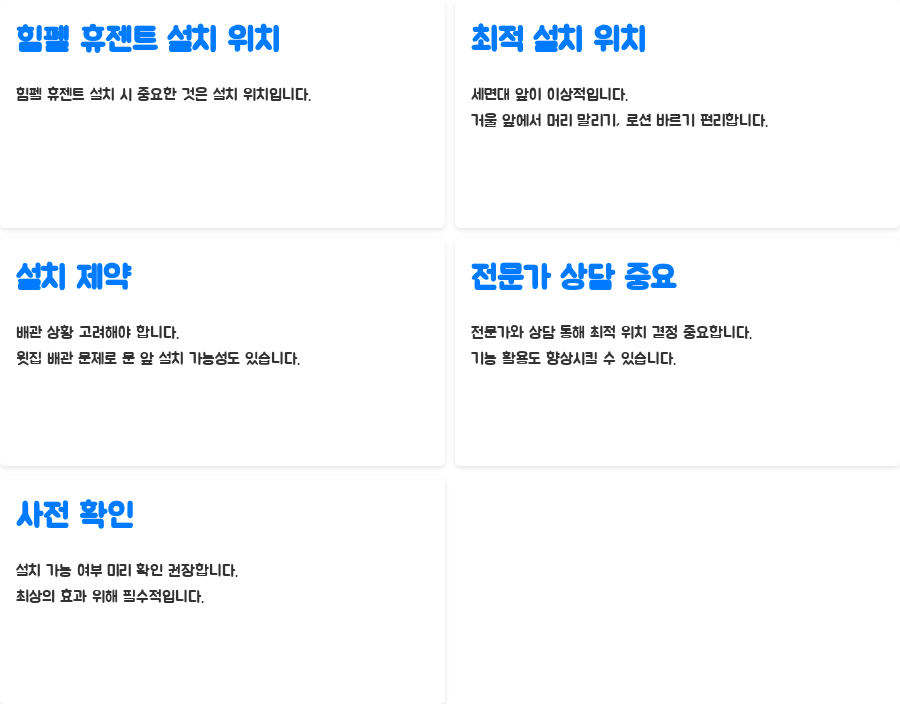 설치 위치에 따라 힘펠 휴젠트의 기능 활용도가 크게 달라질 수 있으므로 신중한 선택이 필요합니다.